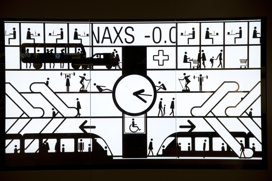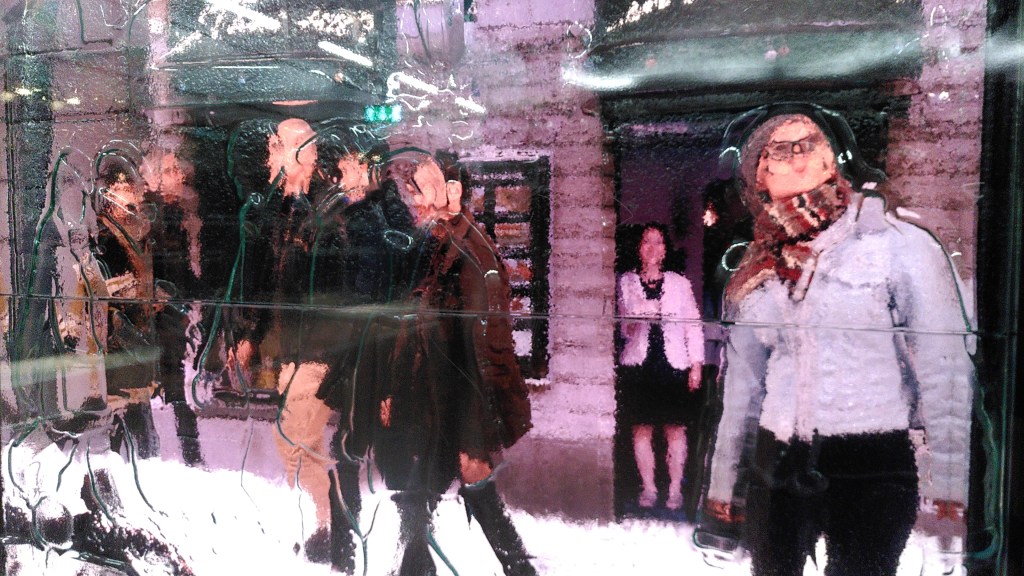 Vi tillbringade en lång stund framför det animerade videoverket av ”Cuckoo Clock” Lars Arrhenius, som skildrar livet och människor som arbetar, reser och umgås under 24 timmar just på denna plats. Ett pågående myller som aldrig vilar.