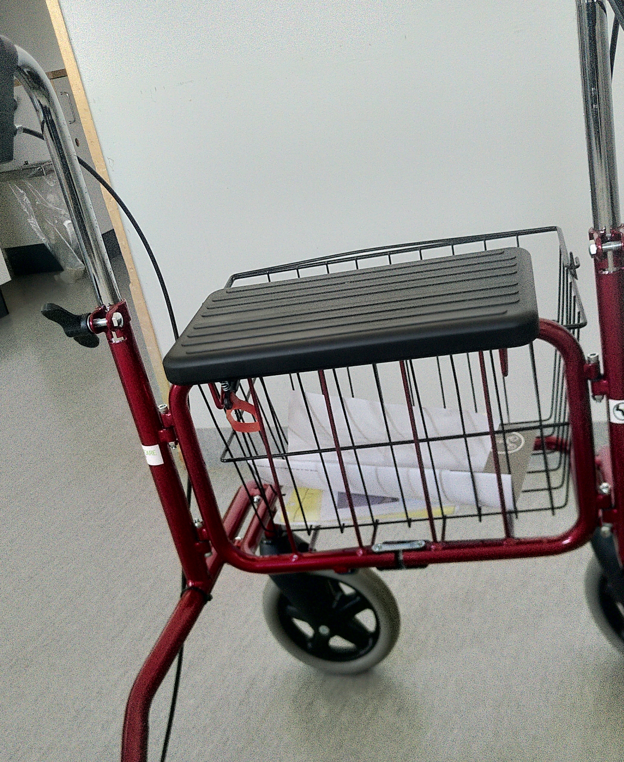 Nu har utskrivningen klarnat. En röd rebell rullator står vid sängen, får med mig mediciner och en lista på när och hur de ska tas. Nu ska bara Skånetrafiken godkänna transport från tillfälliga hemmet i markplan till sjukhuset i Malmö för undersökning och behandling. Vårt boende med fyra trappor utan hiss är uteslutet, får se om trafikreglerna för färdtjänst kan tänjas på…