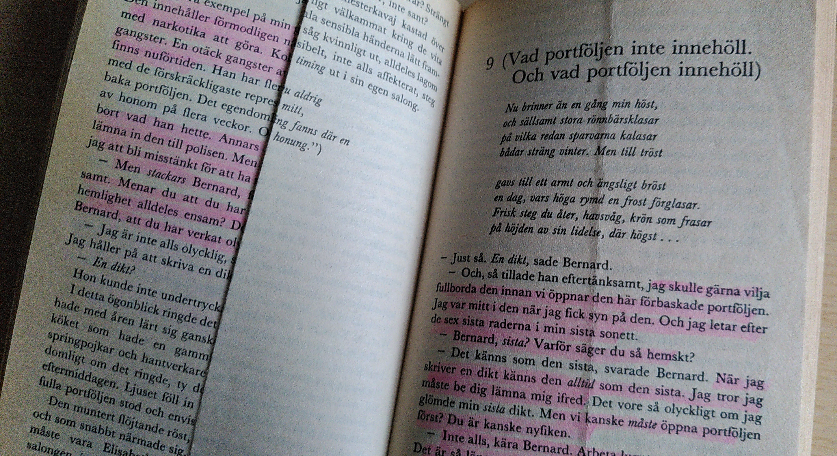Uppslag ur min upplaga av Lars Gustafssons ”Bernard Foys tredje rockad”.