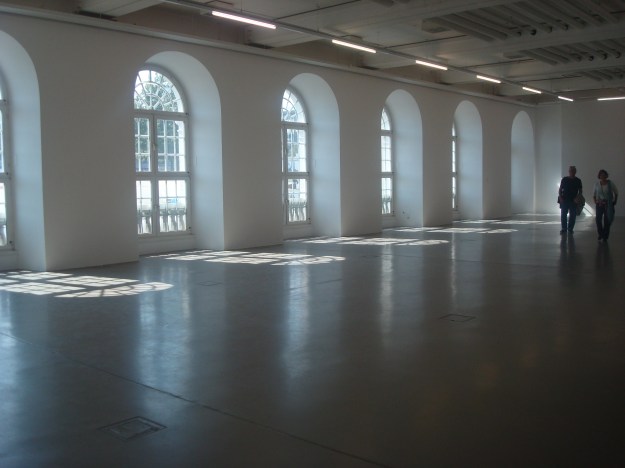 Inte underligt att många kritiker reflekterat över kontrasten mot allt detta, en av de gamla hallarna i arsenalen där teglet, stålbalkarna och betonggolvet framhäver skönheten i Walter de Marias skulpturverk Apollo’s Ecstasy där tjugo bronsstänger placerats ut i en perfekt symmetrisk form och glöder av harmoni. Överväldigande och vackert !