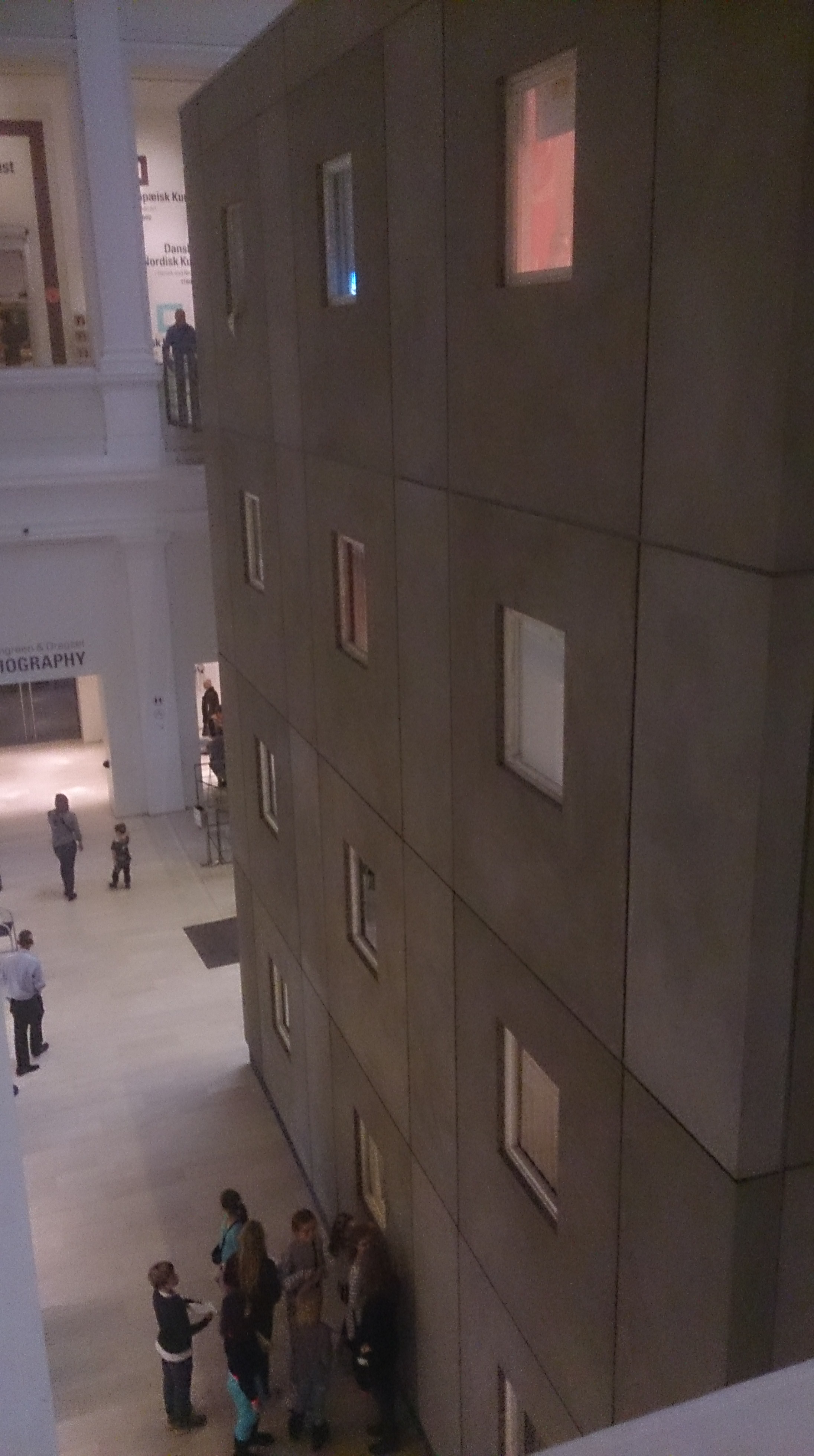 Som den kinesiske dissidenten och konstnären Ai WeiWei som trots tre utställningar och inbjudan från Tyskland/Frakrike inte får utresetillstånd från sin hemort Beijing. Hans verk är självklara – sex stålkistor med miniatyrscenerier från husarresten 2011 där en realistisk dockliknande Ai WeiWei äter, sover, sitter på toaletten; ständigt övervakad av uniformerade vakter. Ett rum fyllt av uträtade armeringsjärn från raserade, fuskbyggda skolor som föll samman under jordbävningarna 2008. Ett palatsrum med 886 trebenta träpallar som fanns i alla kinesiska hus före kulturrevolutionen. Det är samtidskultur där lager på lager av systemkritik och folkkultur läggs samman för att i konstens rum framställa politiskt laddade uttryck.
