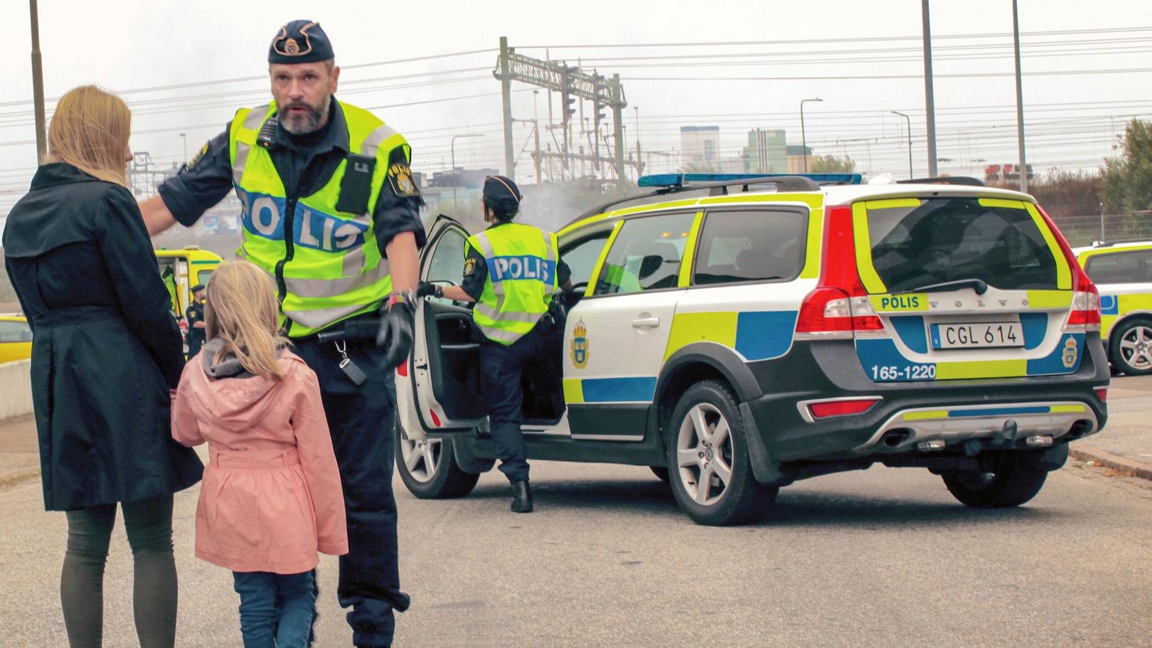 Jesse (Per Lasson) vid ett typiskt vardagsärende för Malmöpolisen i ”Tunna blå linjen”. Bild: Håkan Schüler/Anagram